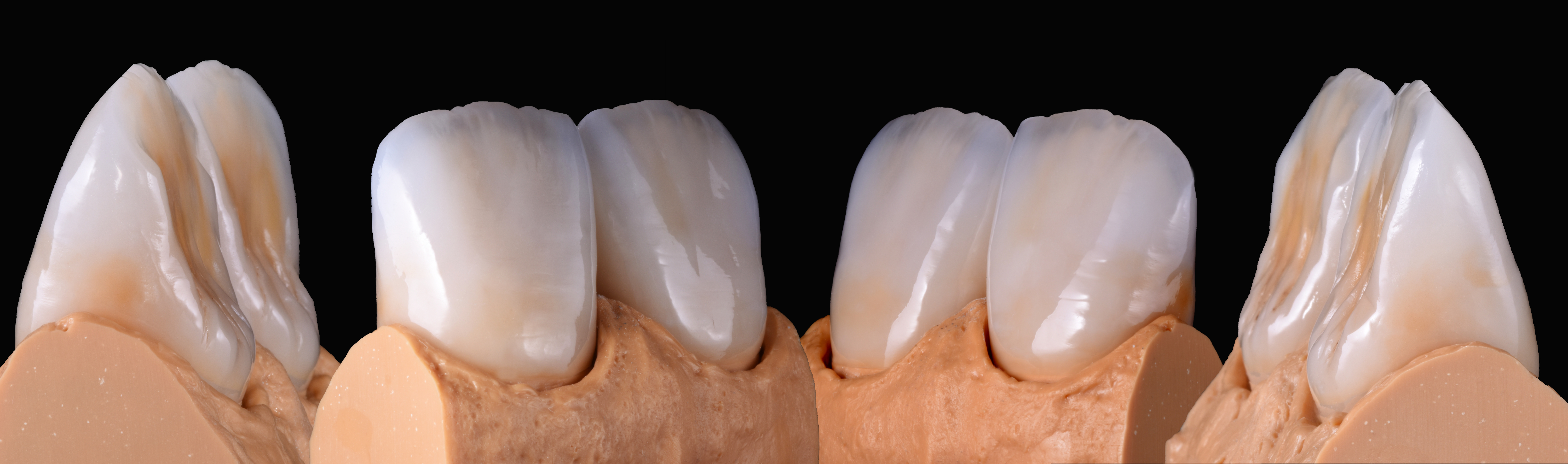 Die Veneer-Technik ermöglicht es, Lücken zu schließen, Funktionen wiederherzustellen sowie Farben und Fehlstellungen zu korrigieren. Die Wiederherstellung eines Zahns durch vollkeramische Versorgung erfolgt in vielen kleinen Arbeitsschritten. Durch die Reproduktion der Morphologie (Form) und der vielfältiger Farbstrukturen. Die Herstellung solcher Versorgungen kann minimal invasiv oder auch non invasiv erfolgen.